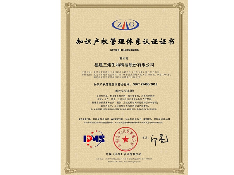 知識產(chǎn)權(quán)管理體系認(rèn)證證書