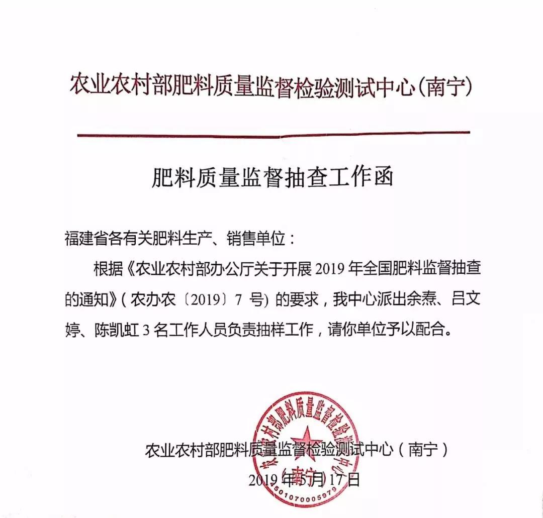 [行業快訊]農業農村部公布2019年上半年全國肥料監督抽查情況,“福建三炬”抽檢樣品全部合格