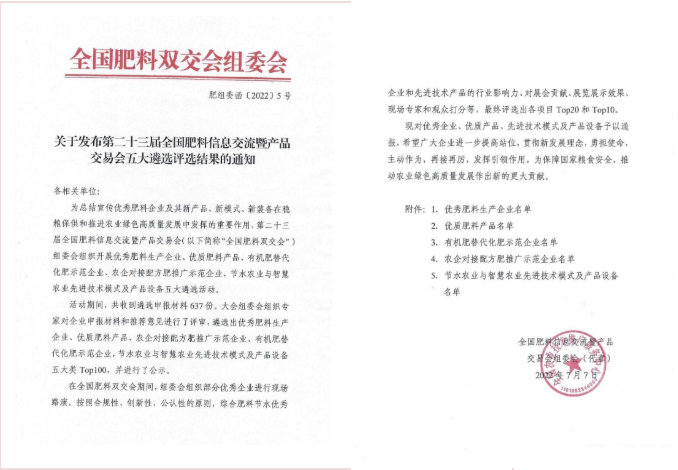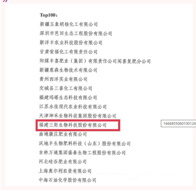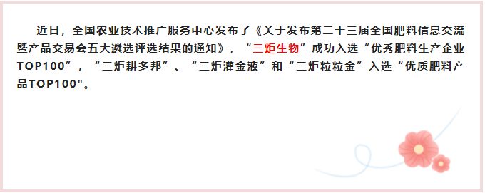 【喜訊】“三炬生物”成功入選“優秀肥料企業TOP100”,多項產品入選“優質肥料產品TOP100”!