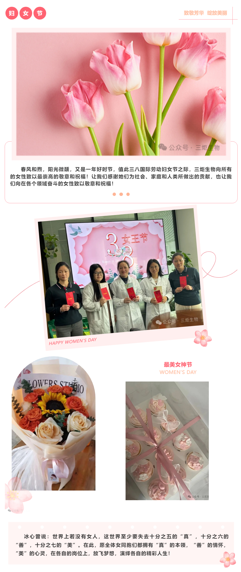 值此三八國際勞動婦女節之際,三炬生物向所有的女性致以最崇高的敬意和祝福!